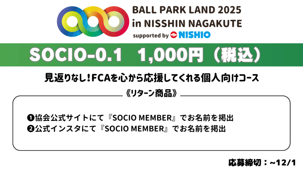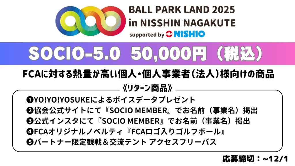 『BALL PARK LAND 2025』個人・個人事業主ソシオ募集のお知らせ